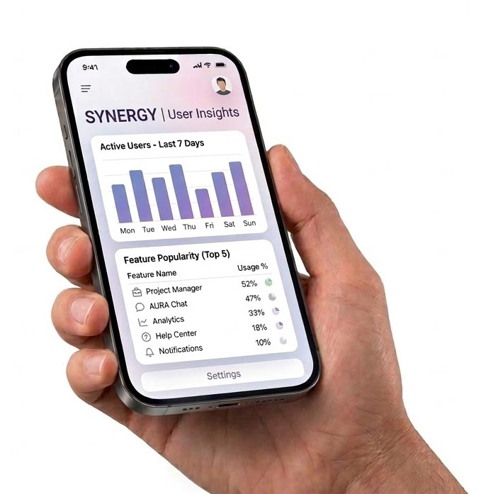 Mobile admin dashboards and customer apps fully synced with your SaaS ecosystem.